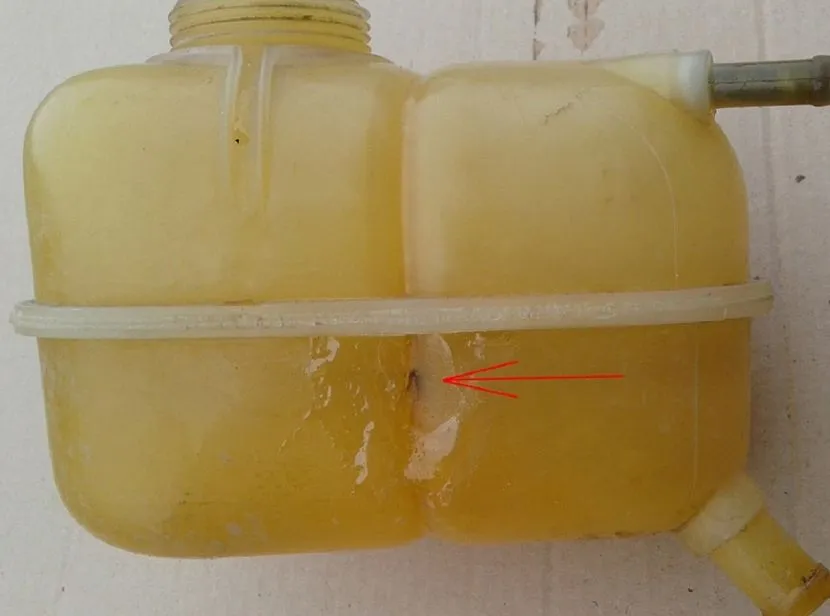 - Если на бачке появились трещины, его придётся заменить. Иногда расширительную ёмкость восстанавливают путём пайки, но такой вариант ненадёжен, поскольку при очередном скачке давления корпус снова может лопнуть.