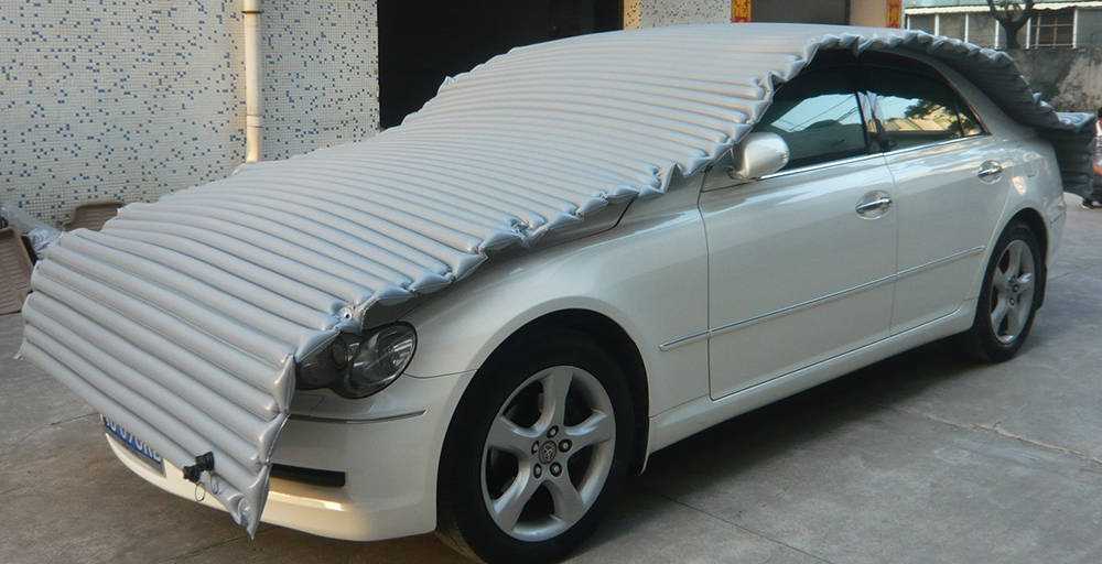 В случае если о приближении непогоды стало известно заранее, а гаража нет, для защиты машины можно использовать, например, пузырчатую пленку. Она стоит совсем недорого и занимает мало места. Еще можно приобрести специальный надувной чехол в автомобильных магазинах.