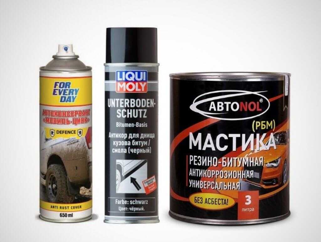 - мовиль (“антикор” на швы, стыки и другие кузовные поверхности, далее, после высыхания, образует похожий на восковой слой защиты).