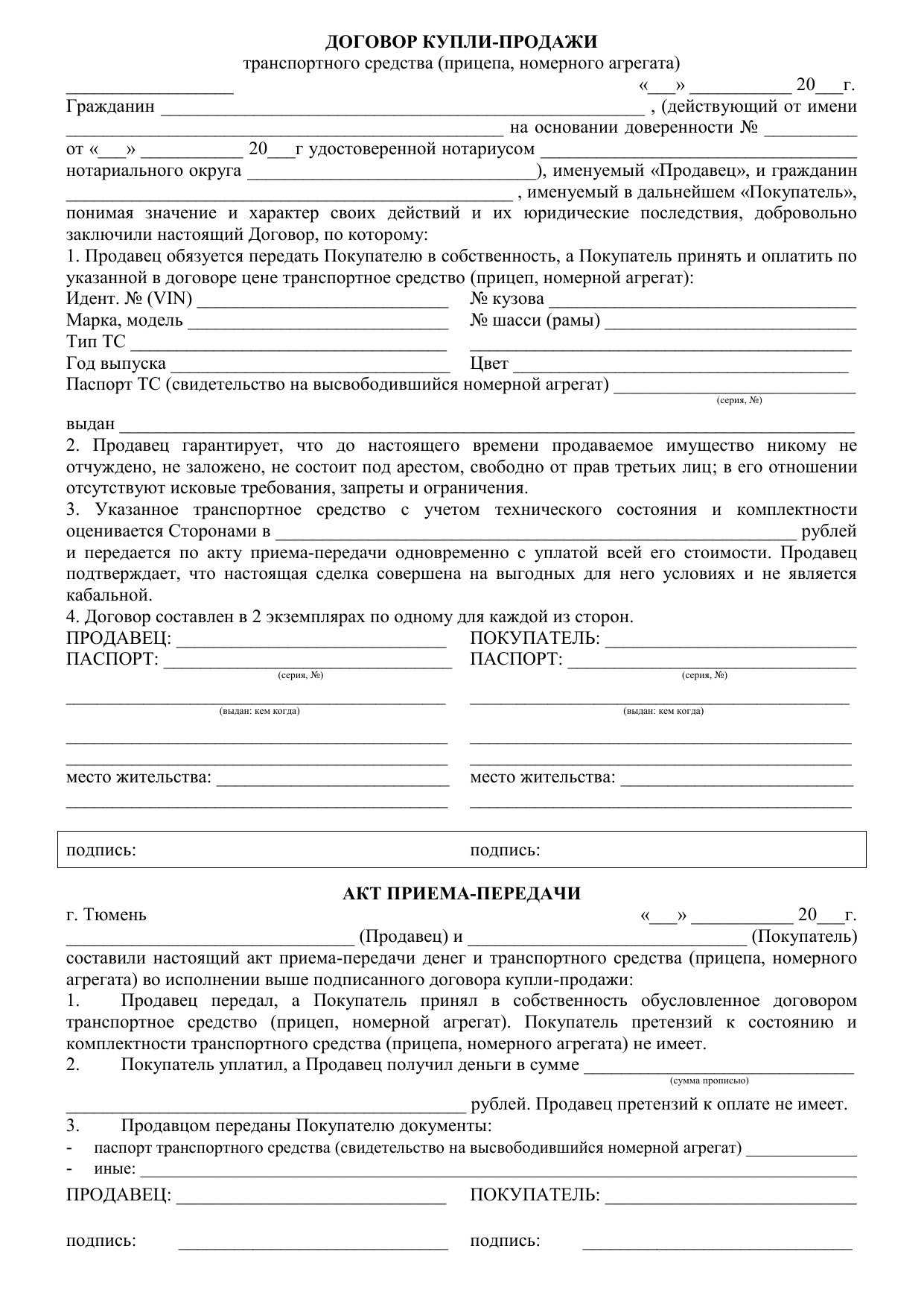 Договор принято заключать в трёх экземплярах. Он также обязательно должен включать в себя «акт приёма – передачи» ТС. Без него договор считается недействительным и не несёт никаких правовых последствий.