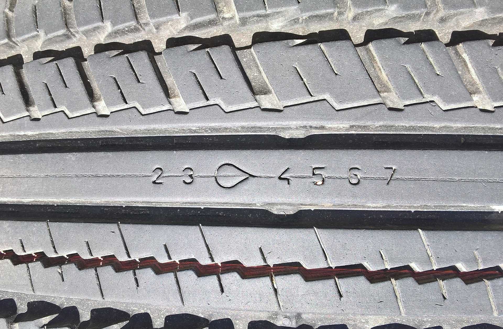 DOT — шина соответствует американским стандартам качества (Department of Transportation— Министерство транспорта США), следом за обозначением DOT идет цифровой код, в котором зашифрованы завод-изготовитель, пресс-форма и партия производства