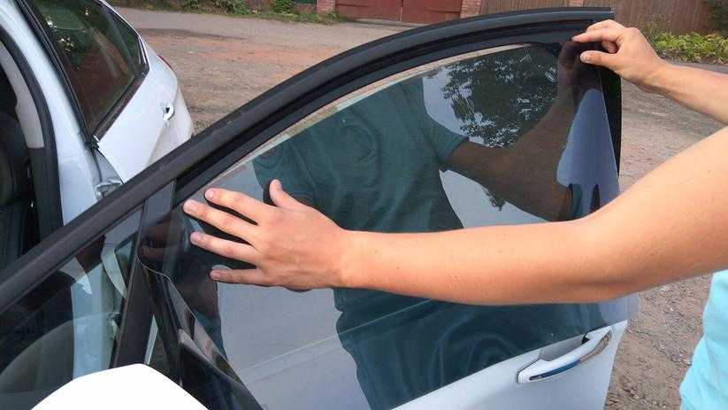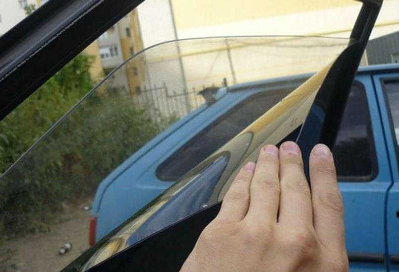 Первым делом необходимо подготовить стекло. Для этого со стороны салона вытираются все подтёки и грязь. Далее, опрыскивателем смачивается водой стекло и сторона пленки, которая будет соприкасаться с ним. Стекло приспускается на несколько сантиметров, и плёнка устанавливается на верхнюю часть, а затем выравнивается. Эта процедура проводится с помощью шпателя. Процесс позволит избавиться от возможного попадания пузырьков воздуха и поможет выгнать остатки воды. На последнем этапе работы стекло приподнимается до упора и монтируется нижняя часть пленки.