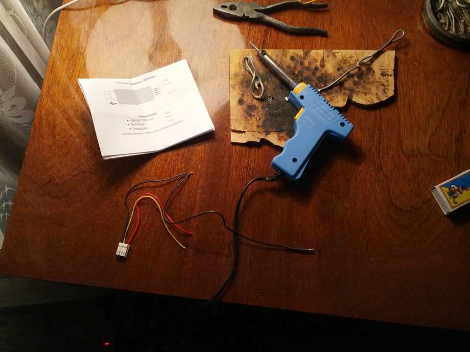 И так приступим! Для подключения проводов к адаптеру, я использовал коннектор мама (питание флупа) от сломанного компьютерного БП. Просто отрезал его вместе с проводами, но они были короткие и я решил их удлинить, проводами от того же самого БП. Так же решил поменять провода местами, для большей ясности:Красный — 12v OUTЖелтый — K-линия (data)Черный — Земля