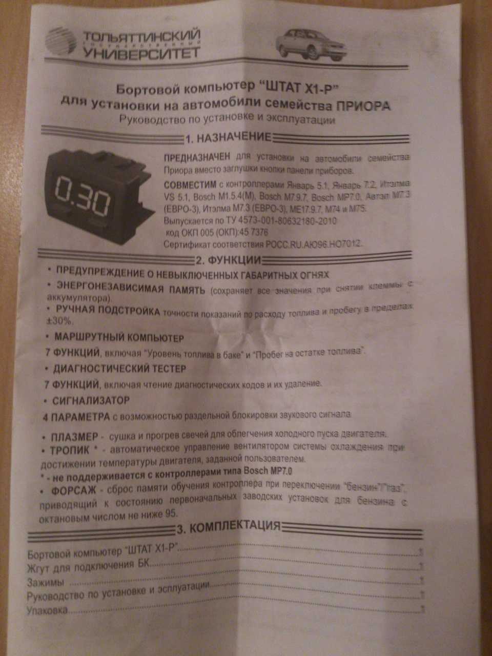 Описание функций бортового компьютера Штат X 5 M Калина Подробнее