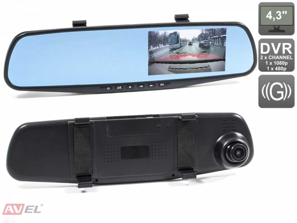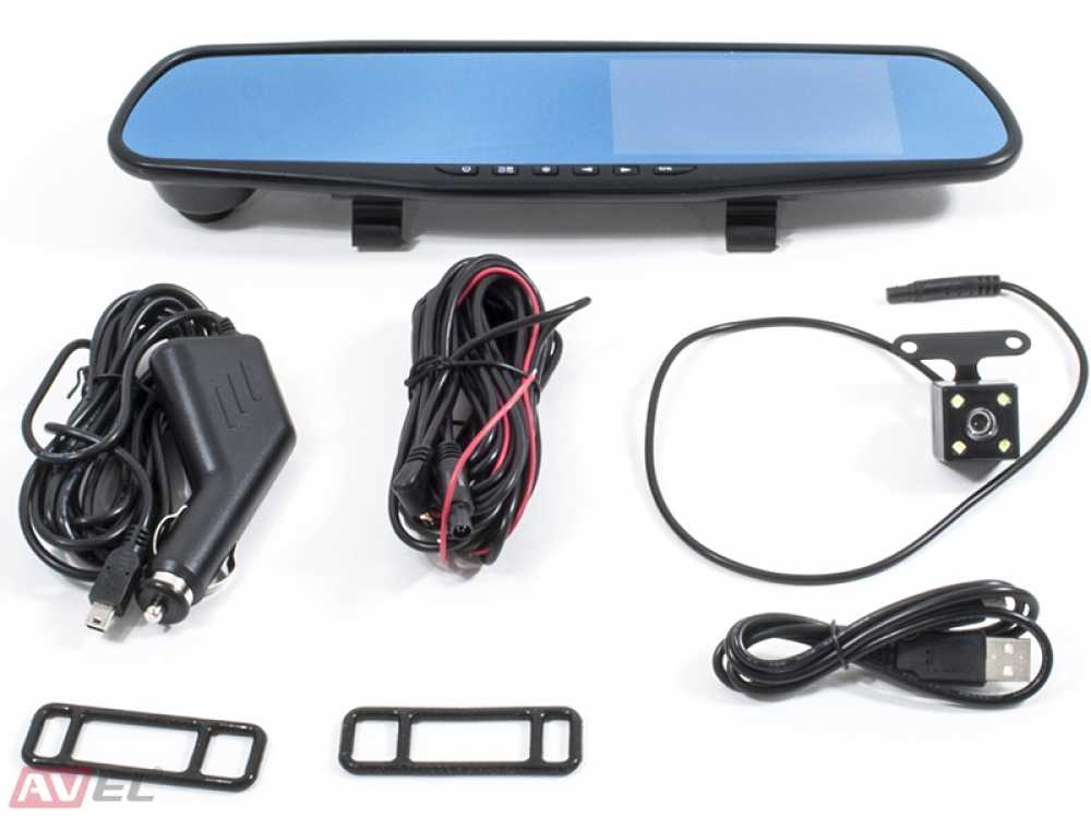 В завершении статьи хотелось бы упомянуть и самое бюджетное зеркало-видеорегистратор с камерой заднего вида, стоимость которого на сегодняшний день немногим выше 3000 рублей. Это модель с небольшим 4,3” монитором AVS0450DVR, которая устанавливается в виде накладки на штатное зеркало.