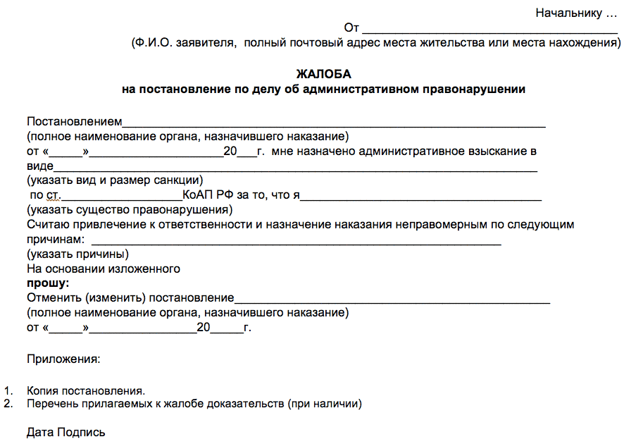 - После того, как постановление суда или ГИБДД получено на руки, необходимо составить жалобу с обращением в один из вышестоящих органов или суд.