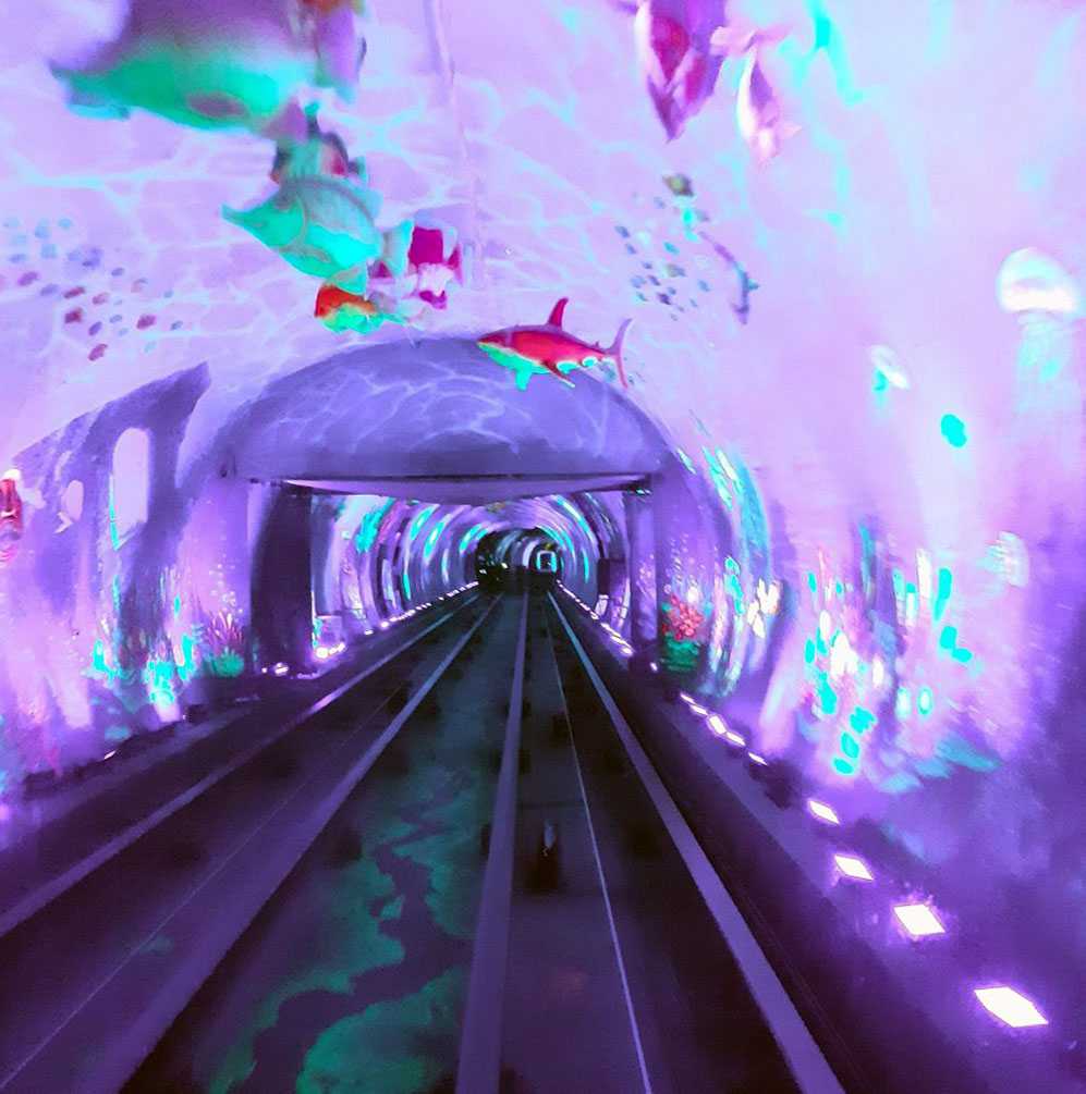За небольшие 5 минут поездки вашему виду предстает целое виртуальное шоу с музыкальным сопровождением — ветка оборудована несколькими тысячами ламп, экранов, гирлянд, проекторов, с помощью которых создаются причудливые оптические образы. На всём пути появляются красочные иллюзии, реалистичные 3D-фигуры, психоделические абстрактные узоры — всё это создает непередаваемую гамму эмоций.