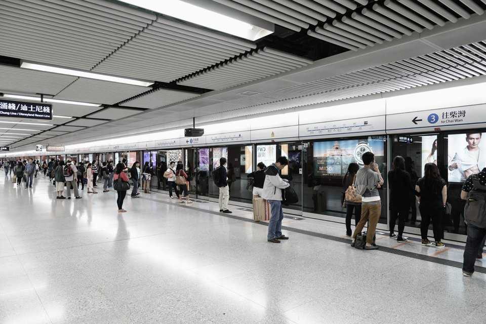 Гонконг обгоняет другие мегаполисы мира не только по количеству небоскрёбов, но и по доле населения, которые ежедневно пользуются общественным транспортом: более 90 % горожан используют для перемещения по городу метро и автобусы. Только за 2012 год гонконгским метро воспользовались почти полтора миллиарда пассажиров. Всё прагматично: станции имеют аскетичный дизайн, а поезда отделены от перронов прозрачными перегородками. Впрочем, даже в таком метрополитене есть свой аттракцион: до Диснейленда ездит поезд с окнами и поручнями в форме головы Микки-Мауса, украшенный бронзовыми статуэтками диснеевских персонажей.