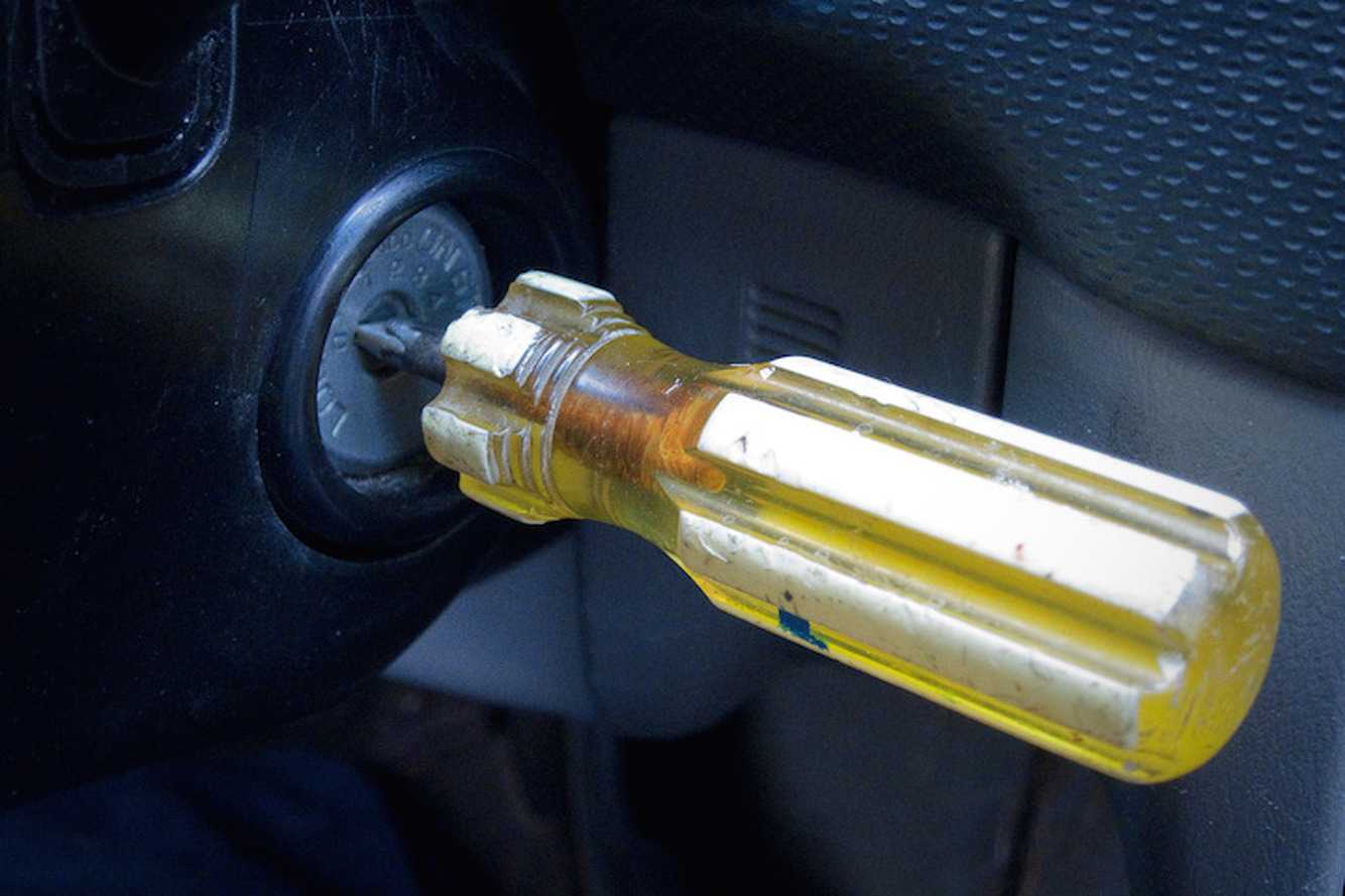 - попытка завести автомобиль нештатным ключом или воровским инструментом;