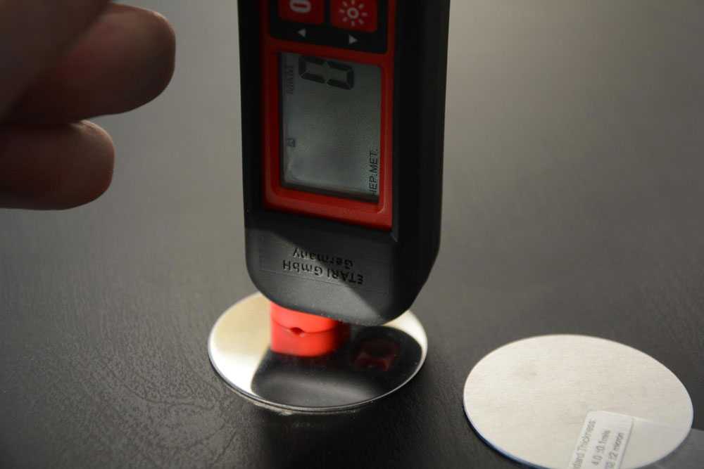 Процесс калибровки прост — ставим толщиномер на пластину и обнуляем показания:
