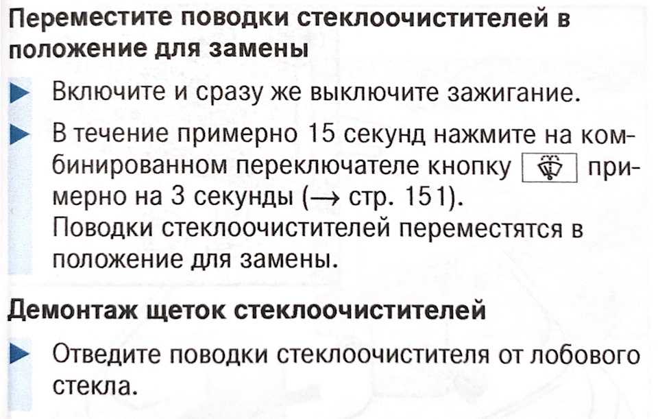 Как активировать сервисный режим стеклоочистителей на автомобиле для более легкой замены щеток на зимние?