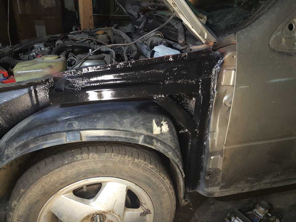 Все внутренние швы я заранее прошел кислотником и шовным герметиком.после кислотника прошел гравиком и после несколько слоев немецкой эмали по ржавчине.