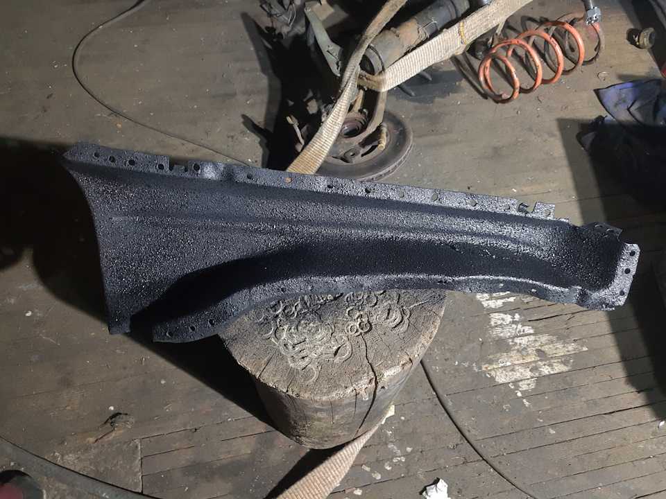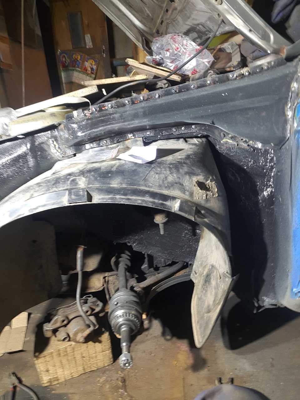 Я прям люблю все гнилое и прям так, по жестче)Ну и в общем-то вся машина уже переварена и практически вся покрашена и решил я зачистить жуки в передней арке, наивно надеясь что там все норм. Наивный, что сказать.в общем начал зачищать жук возле верхнего усилителя и естественно там дыра.