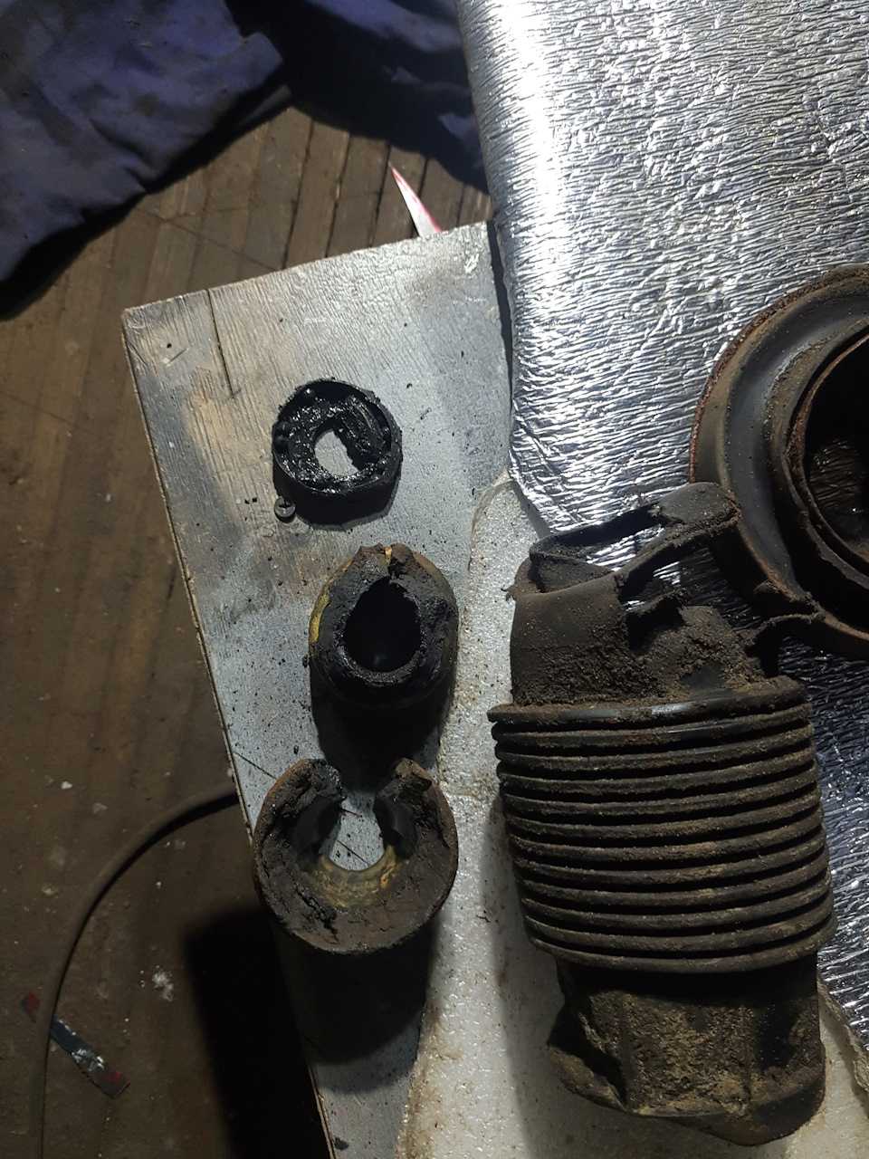Обосенно улыбнул опорный подшипник, его аж наружу вывернуло. Бедолага.В общем амортизатор вытек, пружина села, подшипник на том свете, пыльник и отбойник поучавствовали в войне и проиграли.В итоге заменил амортизатор, пыльник, отбойник пыльника, подшипник, опорную подушку, шрус и шаровую.Не заметил только рулевой наконечник. Все заменил, собрал и поставил на место.Теперь люфт руля меньше, машина собраннее, шрус не хрустит, и машина не плавает. В общем все круто, хотя это только олна сторона, а на очереди другая.