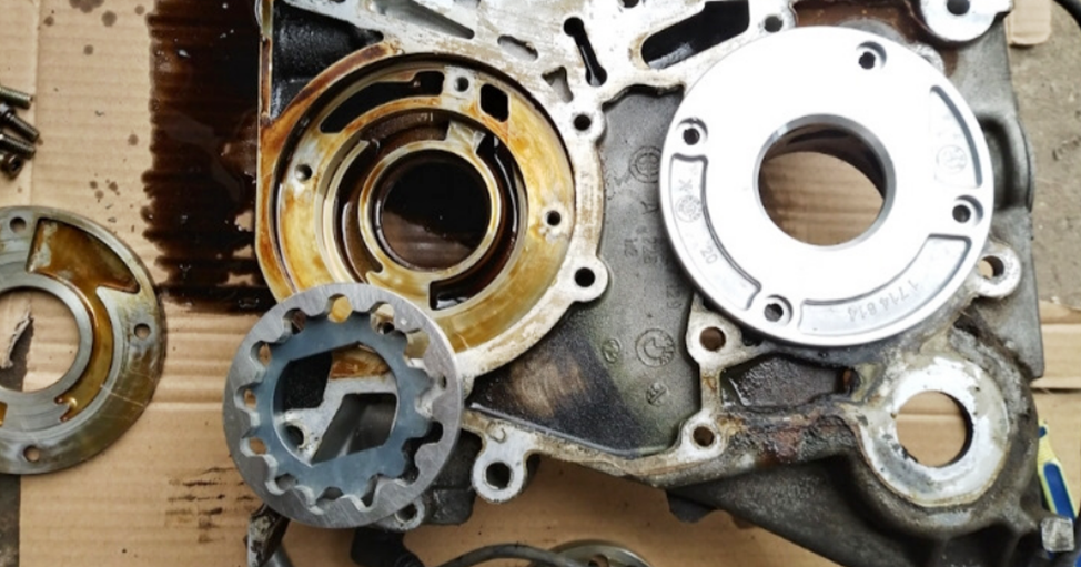 Звонкий стук, ускоряется при повышении оборотов. Не зависит от температуры. Симптомы похожи на неисправности клапанов, но звук доносится с того места, где установлен масляный насос.