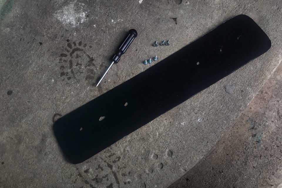 Взяв УШМ (болгарку) Makita 9558HNZ вырезал из старой нержавейки необходимый мне кусокСделав его по 1 см меньше со всех сторонУбрал все заусенчики и закруглил уголкиПосле покрасил с двух сторон имеющейся чёрной краской KUDOАртикул — KU0A9005