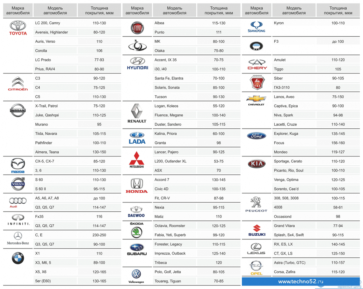 Данные значения считаются стандартными и усреднёнными. Для автомобилей разных производителей и моделей они могут немного варьироваться. Например, у многих японцев тонкое лакокрасочное покрытие. В таком случае толщиномер ЛКП показывает примерно 80 микрон. Для большинства немцев значение в 130 микрон считается нормальным.