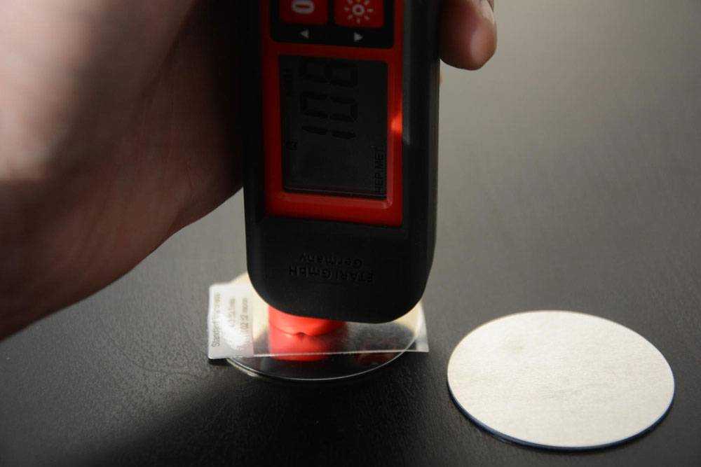 Толщиномер должен показать цифры, нанесенные на пленке. Если этого не происходит, повторяем процедуру.