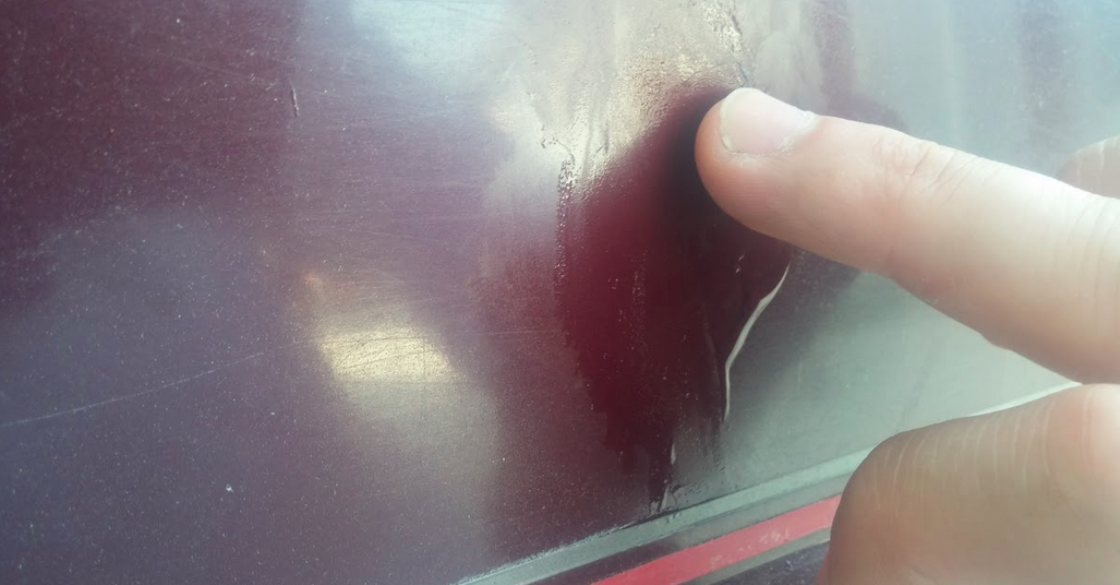 Если сразу не убрать птичий помёт, то на его месте могут остаться вот такие некрасивые следы. Дефекты такой глубины убираются только покраской.