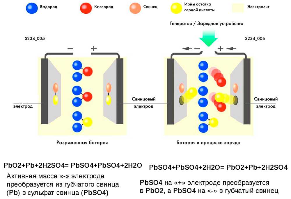 Вы задаетесь вопросом, откуда берется водород, если аккумулятор залит электролитом, который представляет собой смесь дистиллированной воды и кислоты в соотношении 2: 1? Да, но автомобильный аккумулятор, как известно, может находиться в двух состояниях: подавать ток и получать его (крайний случай, когда аккумулятор не работает, мы не будем его рассматривать, так как в этом случае отсутствуют электрохимические процессы).