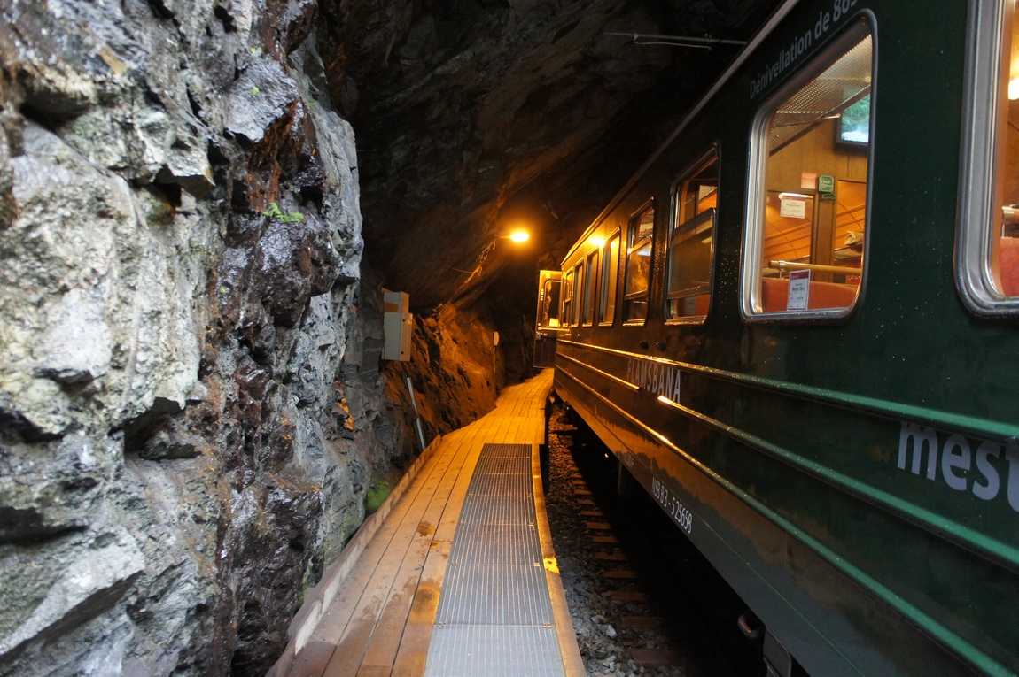 Фломская железная дорога, связывающая столицу Осло и Берген. Поезд преодолевает 20 км участок, проезжая 20 туннелей примерно за час. (Норвегия)