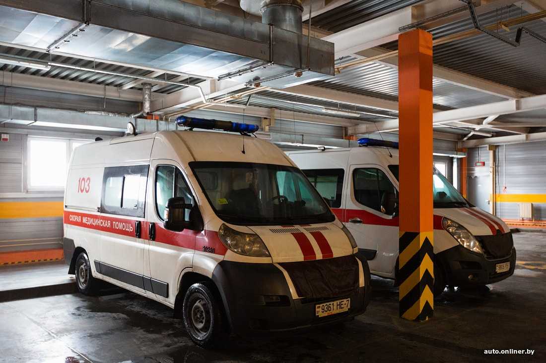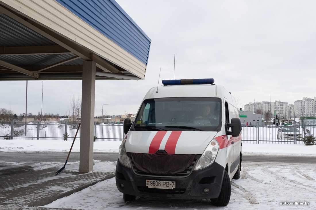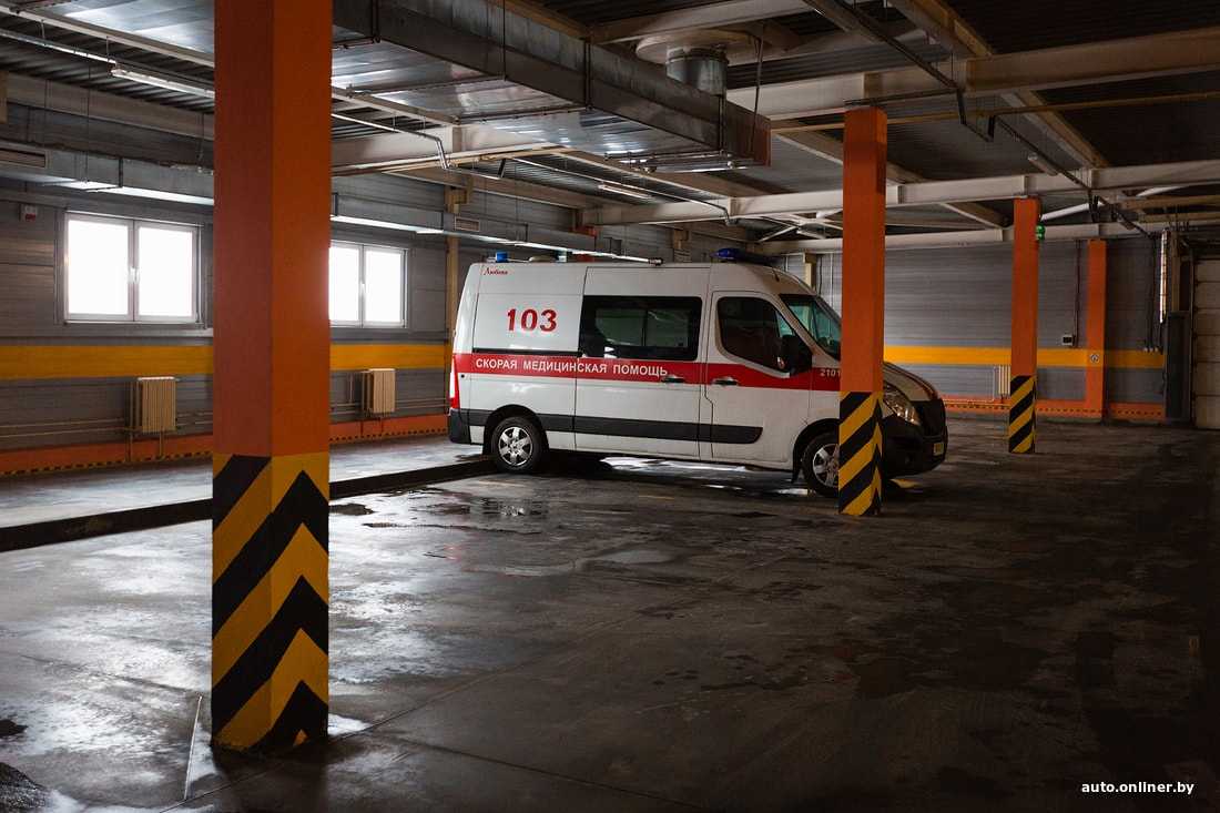 Главный комплекс предприятия «Минсксанавтотранс», которое сдает в аренду медицинский транспорт, находится в неприметной трехэтажке на Петруся Бровки, 25, среди самой большой промзоны в центре города. Именно здесь рождаются и умирают машины неотложки, здесь они ночуют и проводят отпуск, «лечатся» от недугов и просто стоят в ожидании смены. В перерывах между вызовами кареты скорой стоят в гараже на подстанции, а на ночь и выходные отправляются на стоянку предприятия «Минсксанавтотранс».