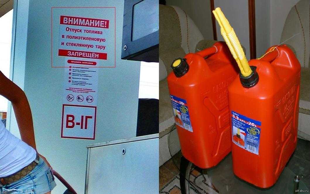 Так или иначе, есть веские причины, по которым вам запрещают лить бензин в такую тару. Знаете – скорее всего, это обосновано. Ведь даже малейший шанс, что может произойти взрыв – должен пресекаться, что и делают на заправках.