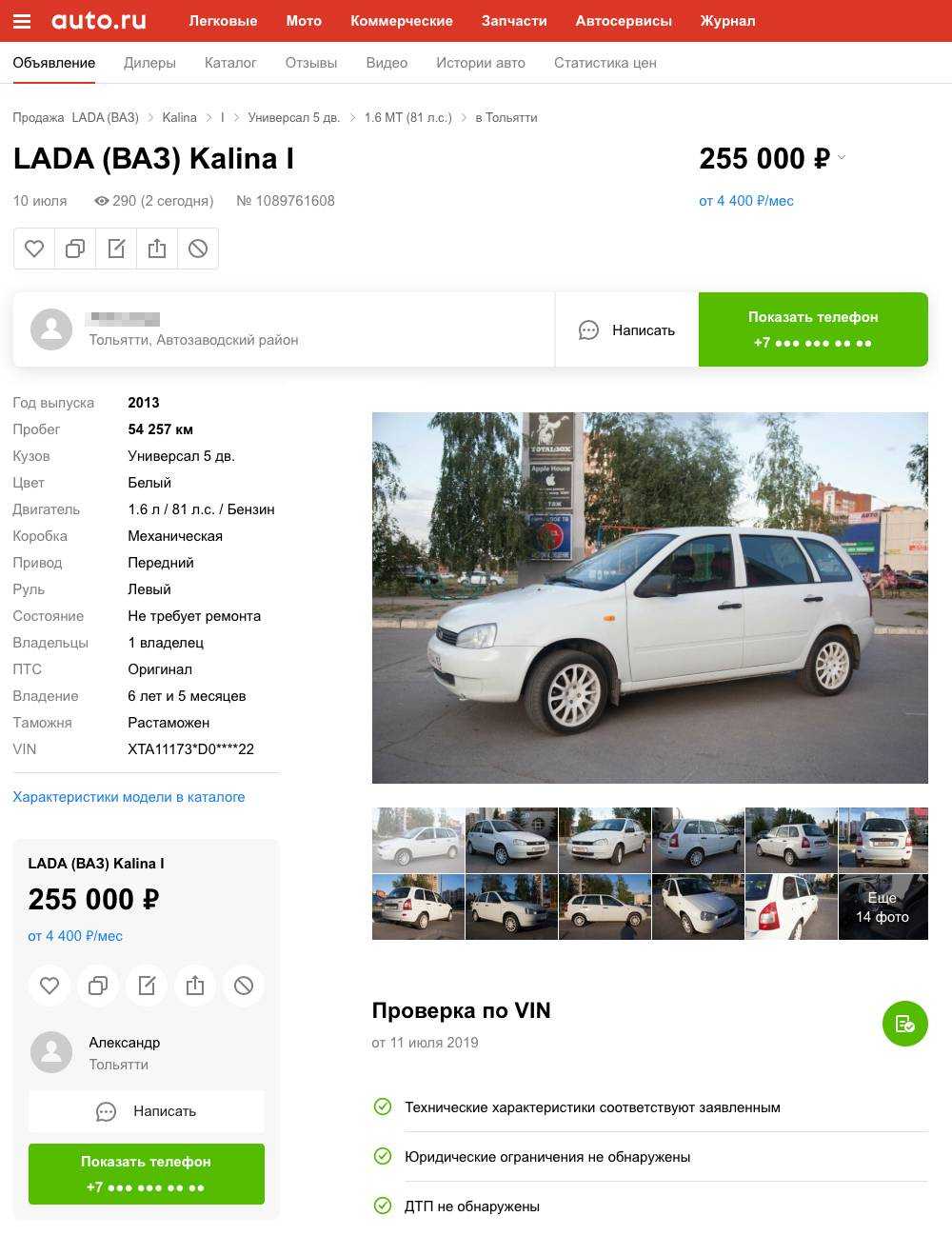 Так выглядит мое объявление на «Авто-ру»