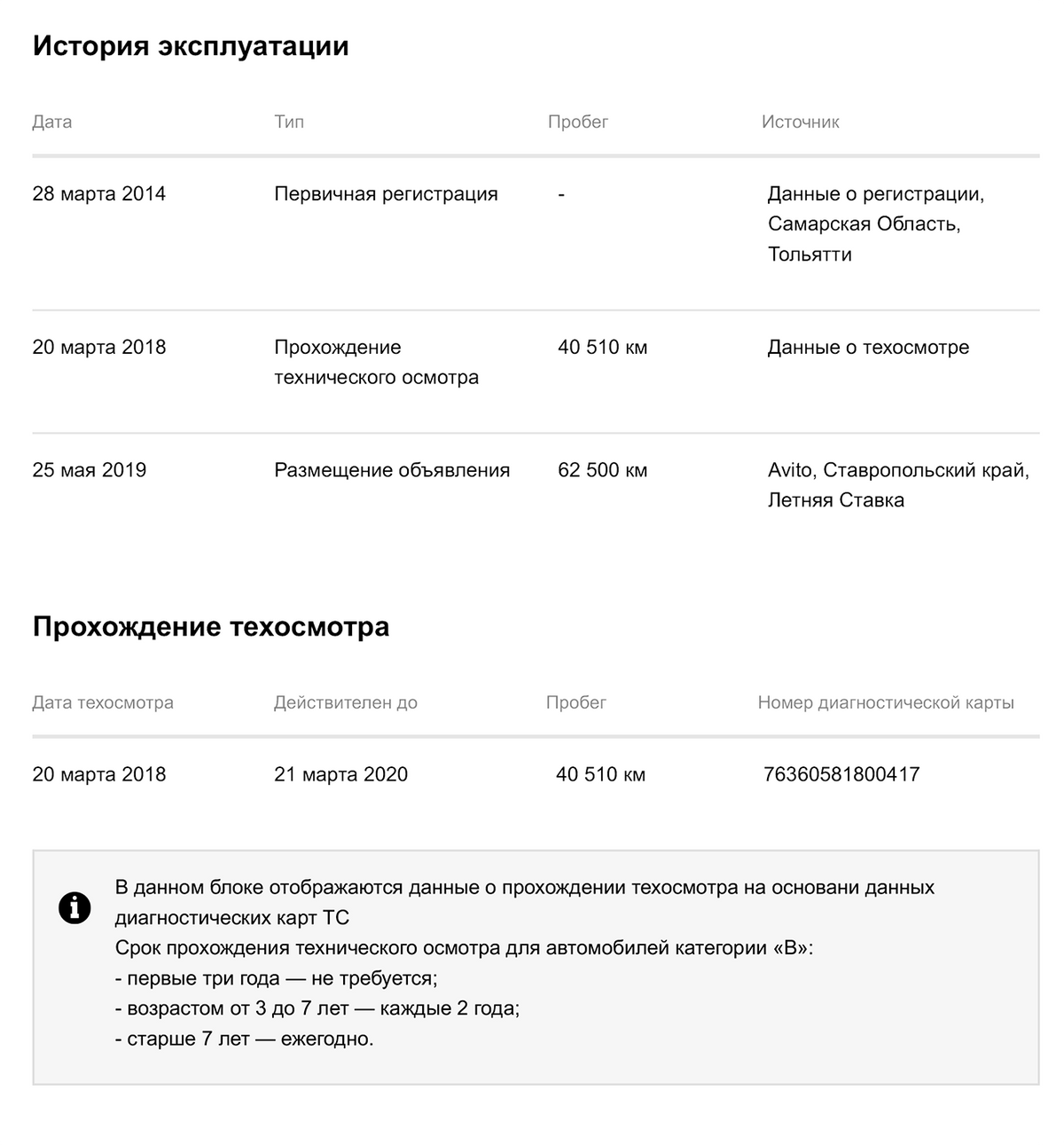 Вот что я смог узнать из отчета «Автотеки». 20 марта 2018 года я действительно проходил техосмотр. А запись от 25 мая 2019 года — уже от мошенника