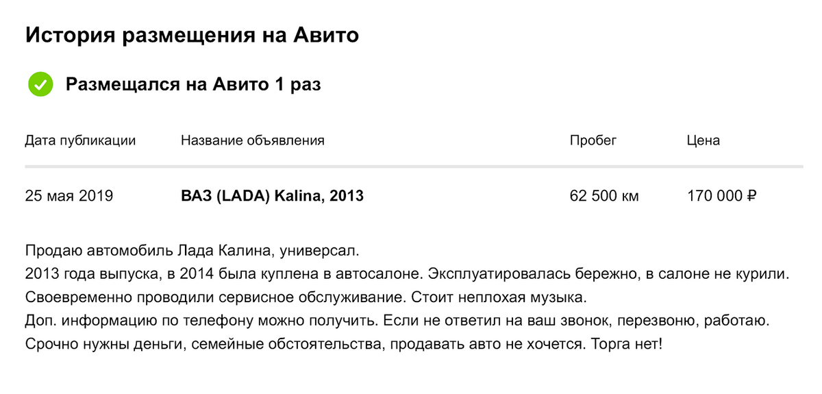 Однажды «Авито» отклонил мое объявление: выяснилось, что недавно на сайте уже продавали автомобиль с таким VIN, — система решила, что я купил автомобиль для перепродажи и должен заплатить за размещение. Но в реальности мой автомобиль никогда не выставлялся на продажу, а я не занимаюсь перепродажей машин.