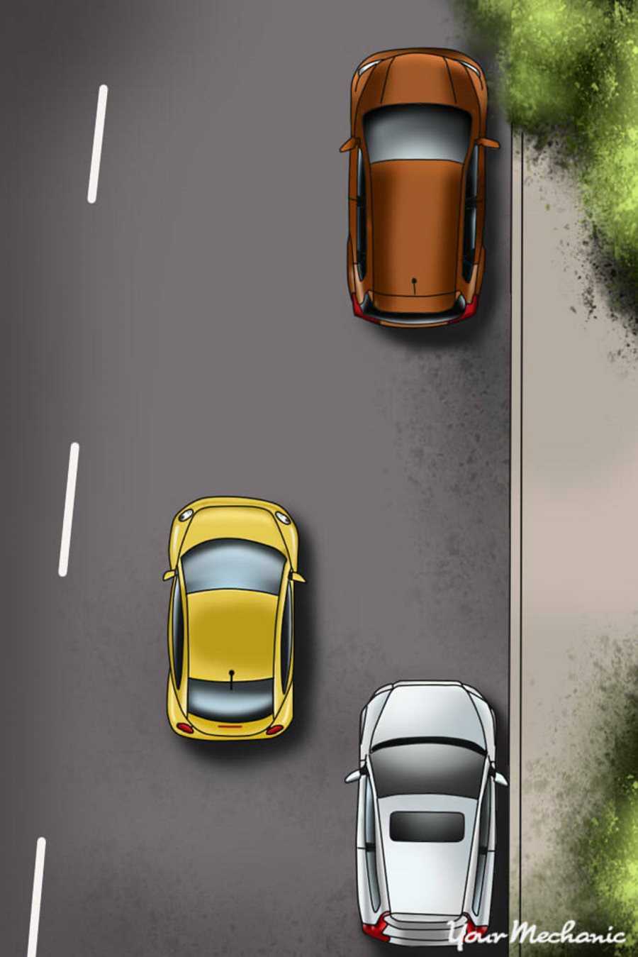 Проедьте вперед, чтобы ваша машина стояла приблизительно по центру между машинами спереди и сзади.