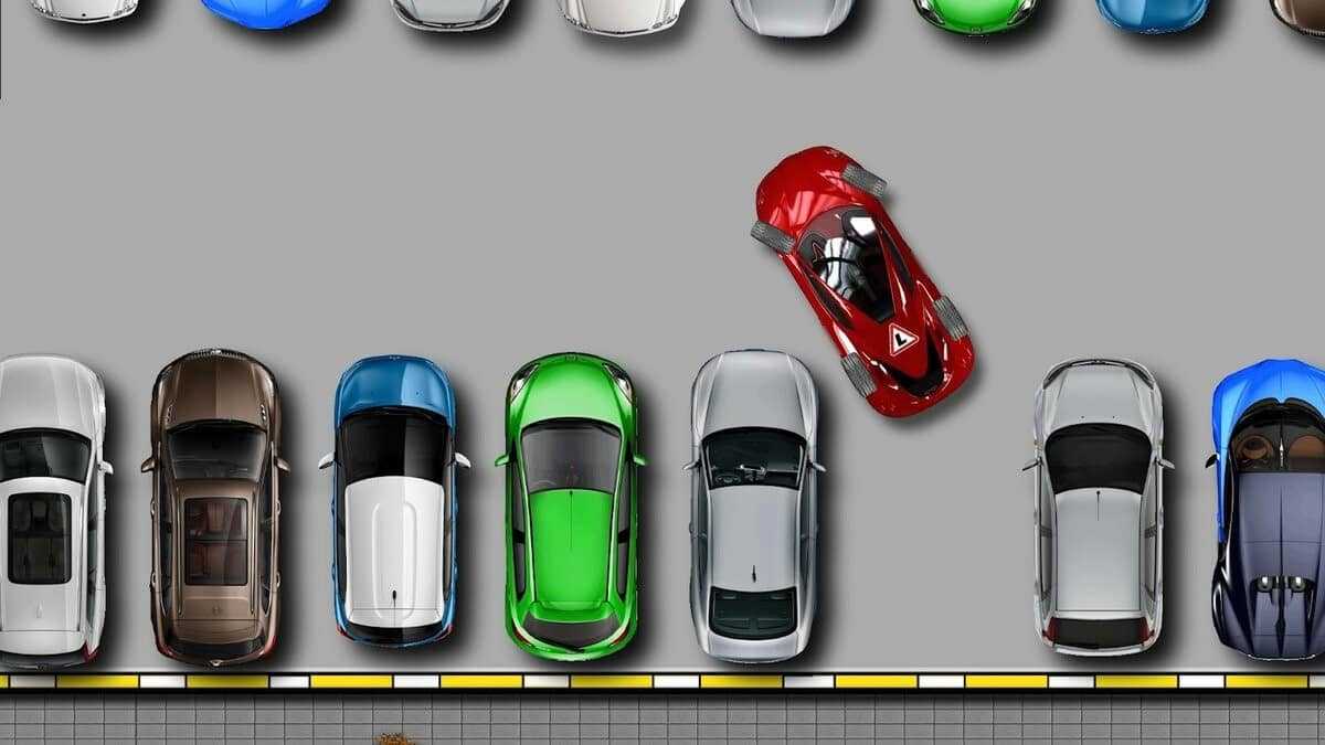 Мы находимся в красном автомобиле и нам нужно выехать с парковки в сторону указанной стрелки. Для 90 % начинающих водителей эта ситуация вызовет затруднения. На ютубе полно видео, где можно увидеть, как люди, выезжая с подобных парковок задом, задевают соседние автомобили. Проблема в том, что люди просто не понимают сам принцип действий при таком выезде — пытаются крутить руль туда-сюда и т.д, тем самым застревая на долгое время. Но на самом деле, это должно занимать не более минуты.