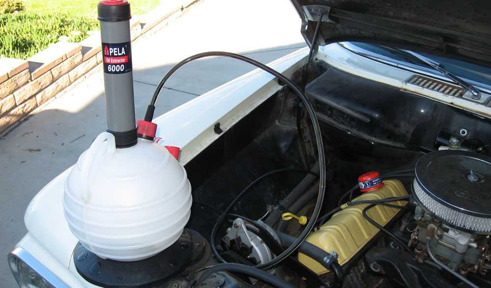 Для откачки отработанного масла с использованием вакуумной системы требуется вынуть масляный щуп, через его отверстие выкачать старое масло и залить новое.