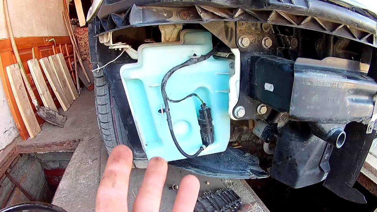 Важно отметить, что в современных иномарках бачок омывателя часто устанавливается в полости бампера. Чтобы его снять, необходимо демонтировать защиту, фару и некоторые другие элементы