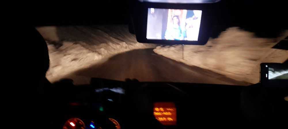 «Здесь сошел снежный завал», — одновременно сказали наши попутчицы, указывая в темноте на огромную снежную гору. Под светом фар машины они сразу стали снимать все на телефон.