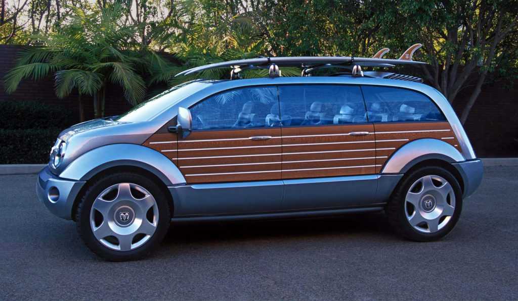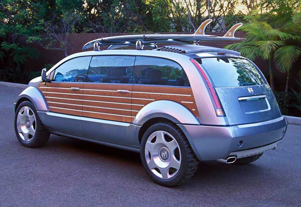 First shown at the 2003 Detroit Auto Show, the Dodge Kahuna Concept brought the idea of the classic California Woodie “surf wagon” into the new millennium. Chrysler Group Vice President Trevor Creed said the Kahuna was for “active individuals, true free spirits, who demand vehicles that are flexible with appropriate room for gear, but they want it with style.” The minivan-esque concept featured seating for six, frameless side glass (all door glass was completely retractable, and the quarter windows were removable), and real bird’s-eye-maple laminate bodyside panels. Twenty-two-inch alloy wheels and silvery paint color called Point Break Blue finished off the beach-ready vibe.