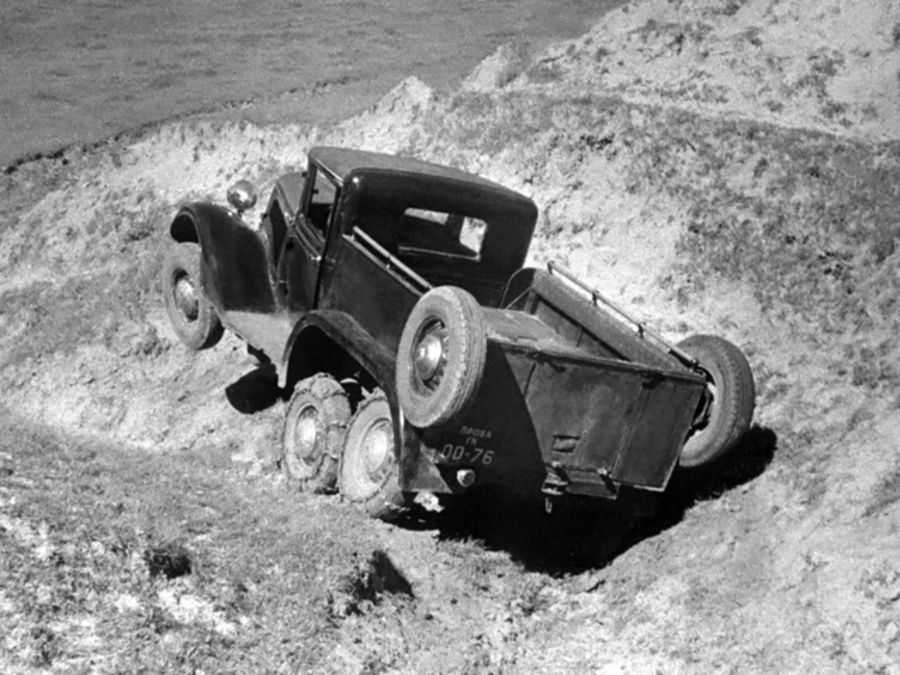 В 1934 году на основе первого прототипа Горьковский автозавод освоил серийное производство трехосного ГАЗ-ААА. Грузоподъемность машины выросла до двух тонн, а вот проходимость повысилась несущественно. Двускатные шины на задних ведущих мостах не способствовали движению по бездорожью.