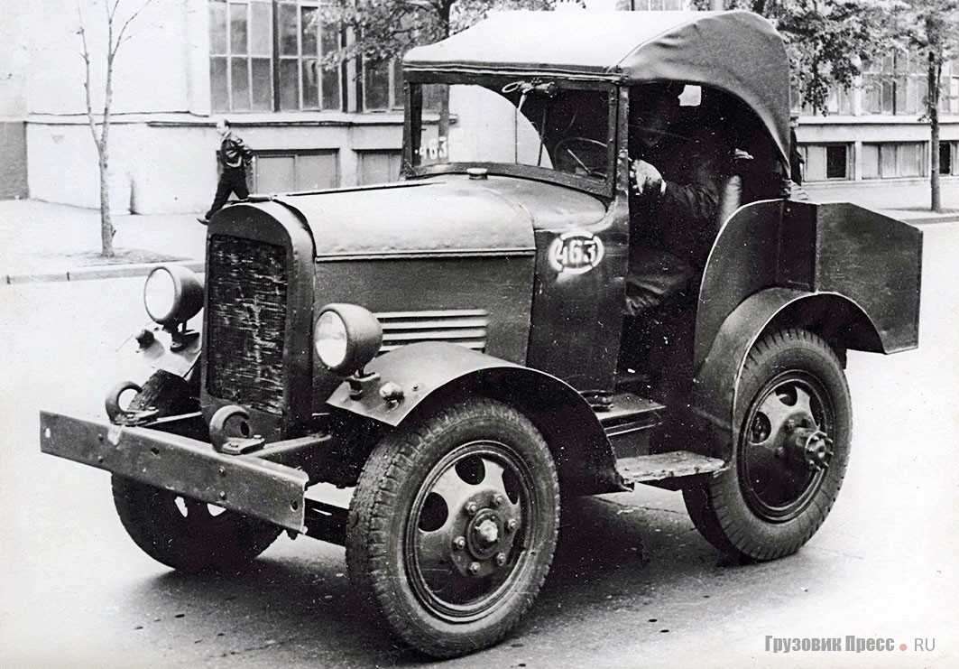 Решили этот вопрос с помощью наиболее очевидных и доступных в то время средств. У первенца советского автостроения АМО-Ф-15 обрезали хвостовую часть несущей рамы, установили грузовую платформу без бортов, а сзади смонтировали буксирный прибор крюкового типа. То же самое проделали с моделями, появившимися позже – АМО-3, ЗИС-5, а потом и ЗИС-150. Тягачи для внутризаводских перевозок обычно получались из некондиционных шасси или списанных автомобилей, которые восстанавливались до рабочего состояния.