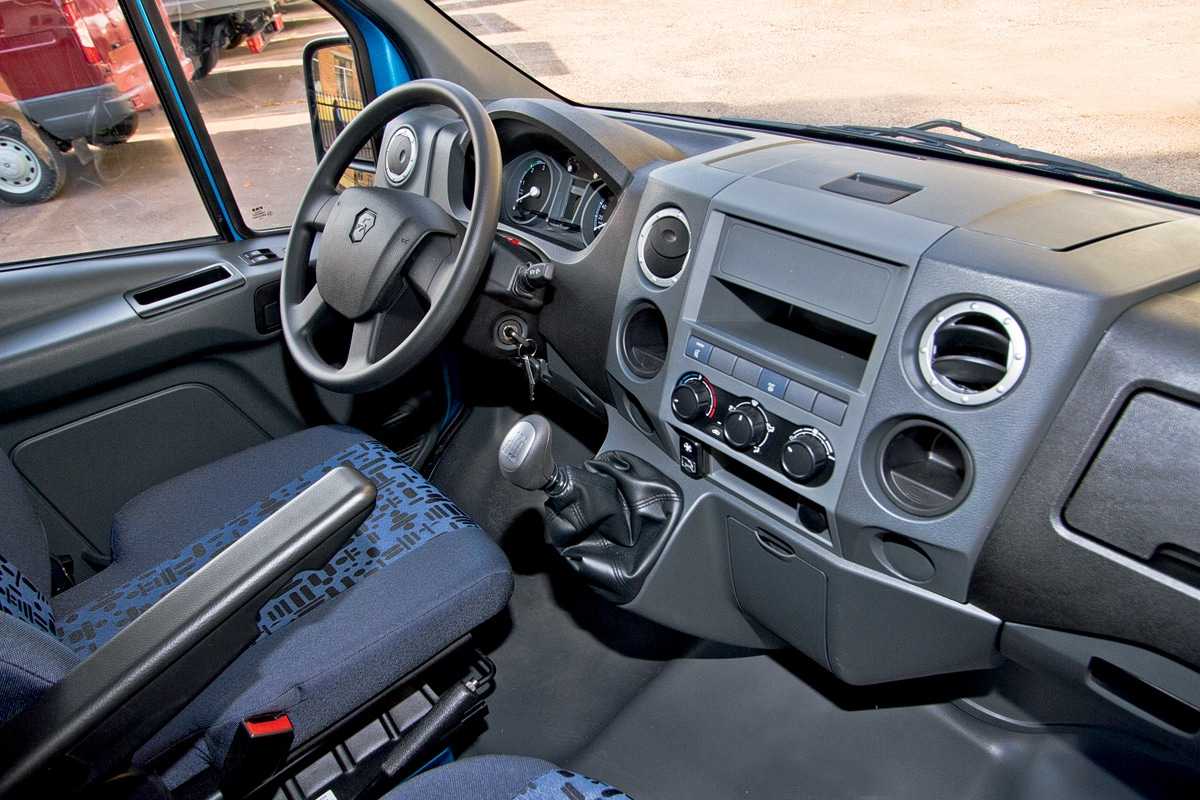 Внутри кабины находится новая передняя панель с прямоугольными воздуховодами, полноценным мультирулем, оснащенным подогревом, и центральным сенсорным дисплеем.