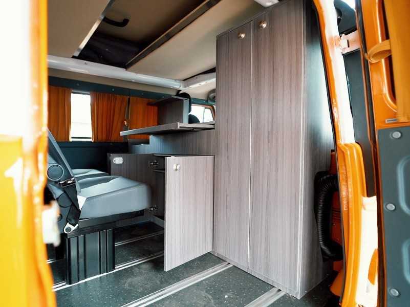 Кроме того, в пассажирском салоне может быть установлен легкосъёмный столик. Садиться в микроавтобус удобно: его боковая дверь оборудована рукояткой и стационарными ступенями. Задний дверной проём, с двойными распашными дверями, оснащён откидывающейся подножкой. В открытом виде распашные двери можно фиксировать специальными замками.