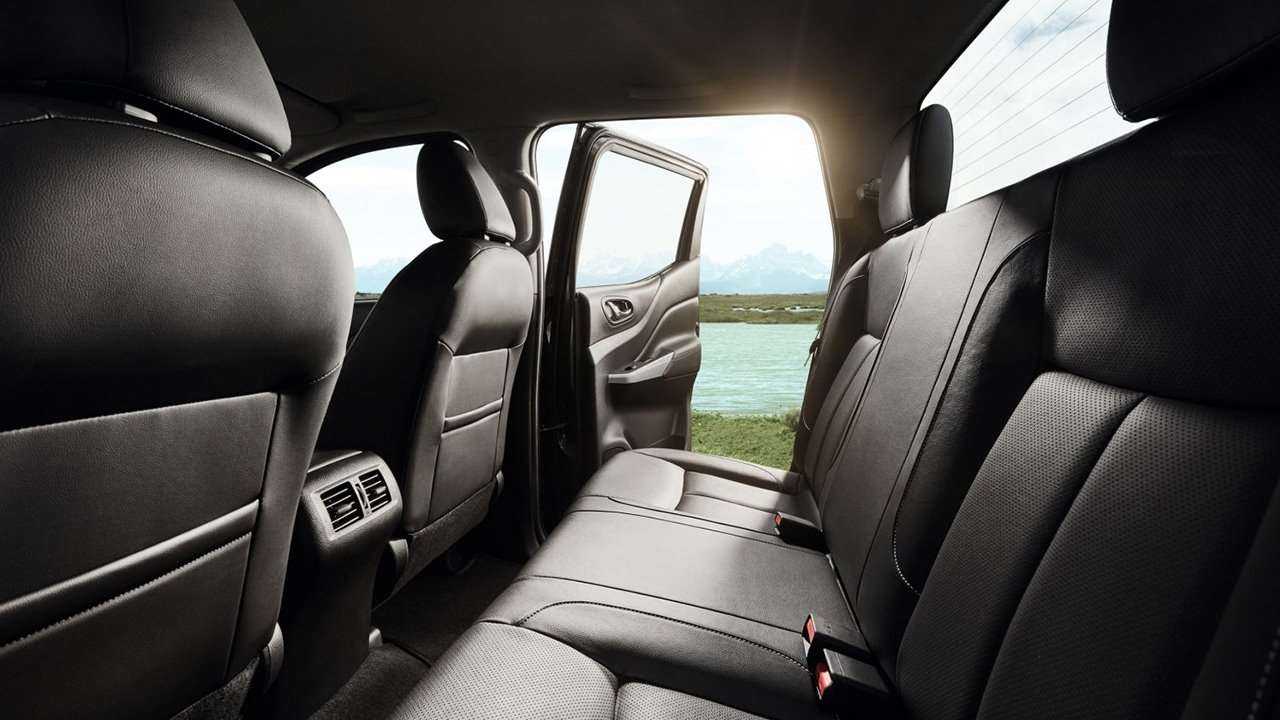 Внешний облик этого автомобиля современный и стильный. На переднем плане большая эмблема компании в центре решетки радиатора, немного угловатые фонари и мощный бампер. Вид сбоку у Ниссан Навага НП 300 показывает оригинальные линии подоконника, которые поднимаются к стойкам сзади авто и широкие колесные арки.