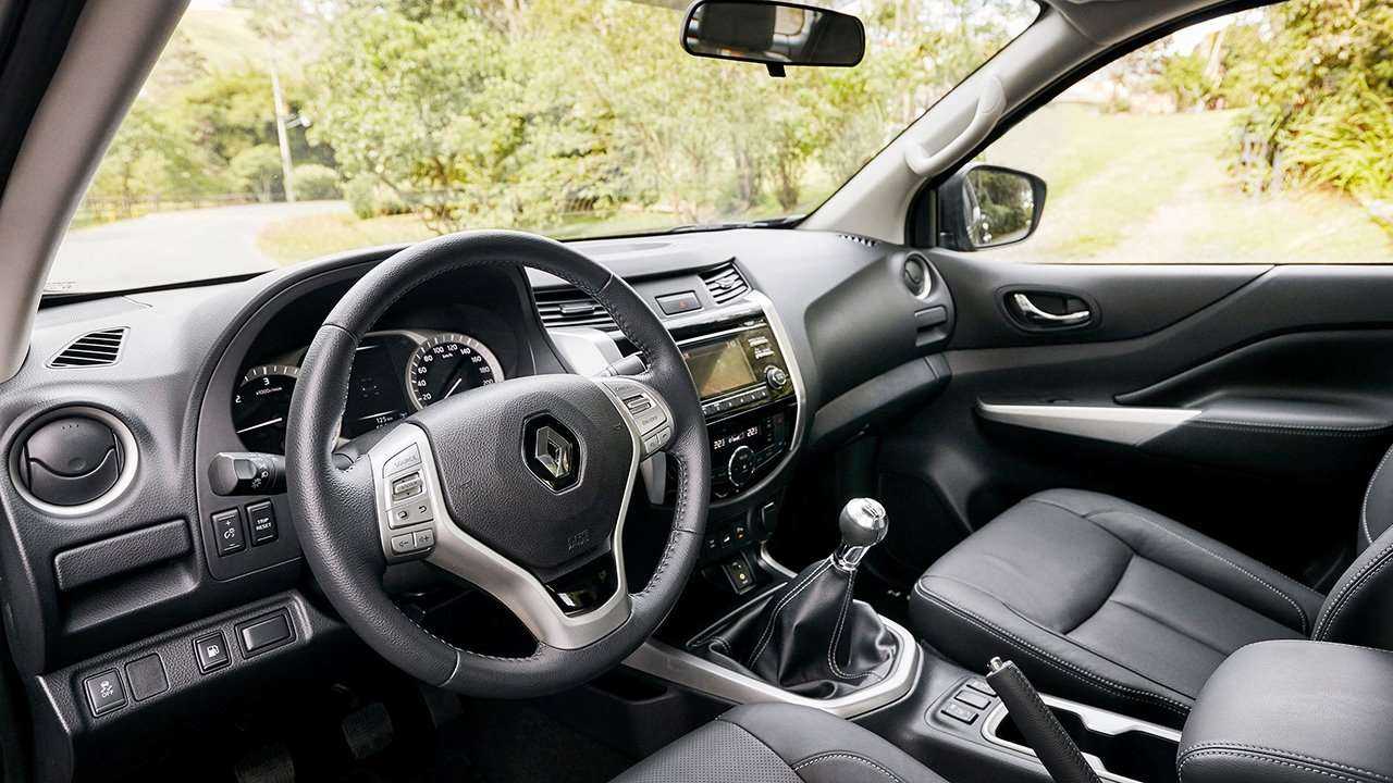 Интерьер салона Renault Alaskan выполнен в полном соответствии с актуальными тенденциями автомобильной моды и полностью лишен утилитарности. Рулевое колесо с множеством кнопок управления и рельефным ободом, а также центральная глянцевая консоль, на которой расположен семидюймовый монитор мультимедийной системы и стильный блок управления климатической установкой – это всего лишь базовое исполнение в интерьере автомашины. К мультимедийной системе подключены камеры для кругового обзора с функцией видеорегистратора, обеспечивающие полный контроль вокруг автомобиля, которые в разы повышают безопасность при поворотах, движении передним и задним ходом, а также при парковке автомобиля в ограниченном пространстве.