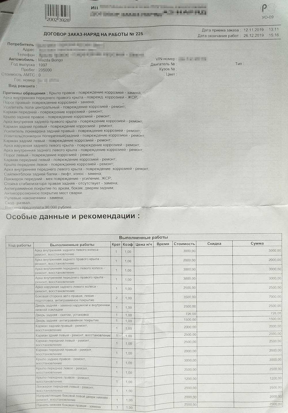 Позже выяснилось, что можно было взять несколько рассрочек и заплатить за работу потом, но тогда мы в этом не разобрались. Муж заплатил, подписал заказ-наряд. Закончить ремонт должны были 26 декабря — через полтора месяца.