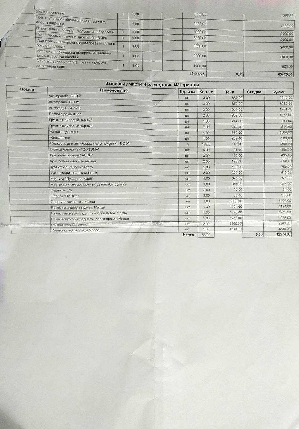 На чистой машине очаги коррозии заметны гораздо лучше, поэтому в этот раз нам выставили счет на 90 000 Р. Сказали, что поменяют задние арки, пороги и часть железа на бортах кузова. Заднюю дверь решили не трогать, потому что муж хотел заменить ее на контрактную из Японии.
