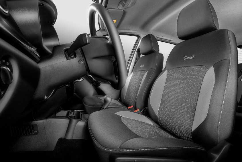 Из особенностей версии Quest — обивка сидений водоотталкивающей тканью, впервые примененная на автомобилях Лада, резиновый коврик и сетки в багажнике. Внешние маркеры новой комплектации — черная окраска крыши, рейлингов и колес. Наконец, на кузове, порогах и сиденьях теперь красуется название версии.