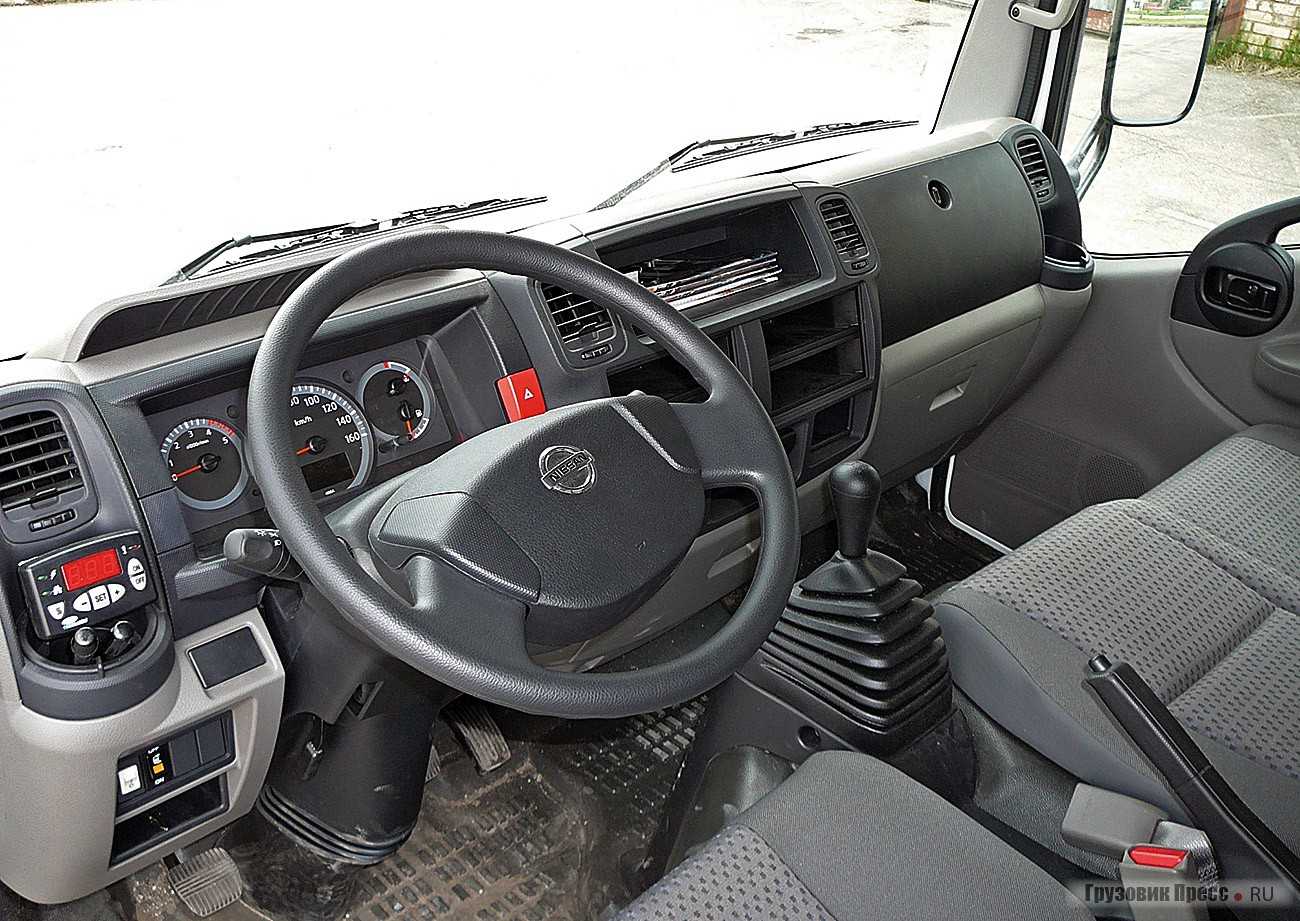 Управление и езда Ниссан Кабстар, так сказать, обычное. Принципиально необычных ощущений никаких нет, да и быть не должно. Ручка 5-ступенчатой коробки передач расположена «по старинке», неподалеку от правой ноги. К нему привыкаешь быстро, но хотелось все-таки видеть эту деталь управления на панели. Когда ручка коробки передач расположена неподалеку от правого подрулевого переключателя — это все же удобнее. К примеру, у того же Mitsubishi CanterGuts ручка КПП расположена именно на панели.