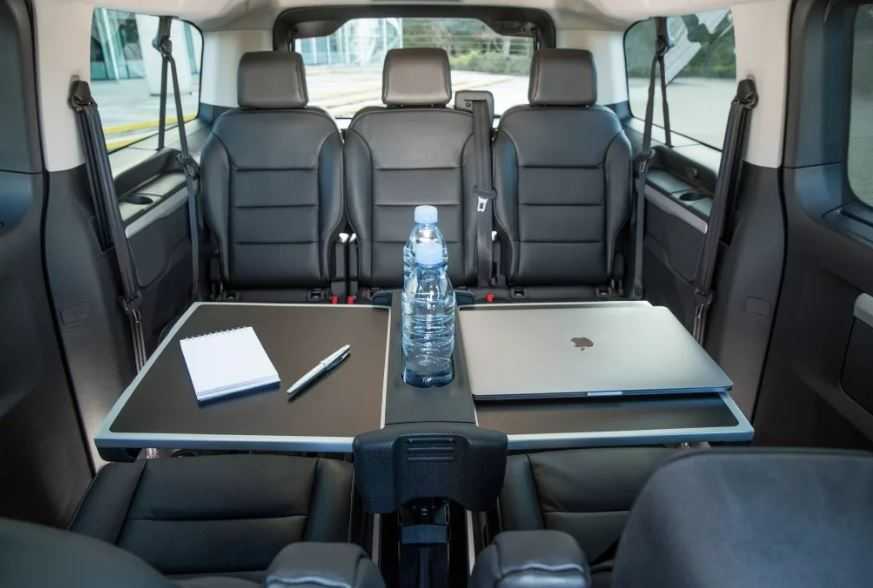 Салон действительно напоминает дорогой кабинет в нем даже имеется небольшой раскладной стол. А кресла второго ряда можно развернуть в противоположном направлении.